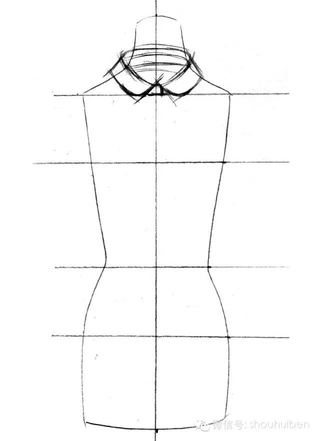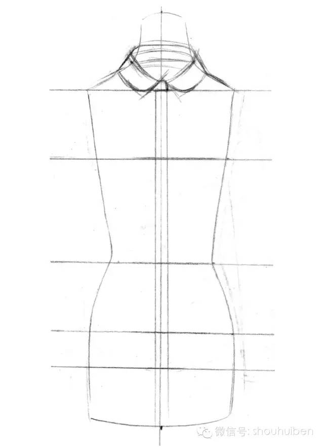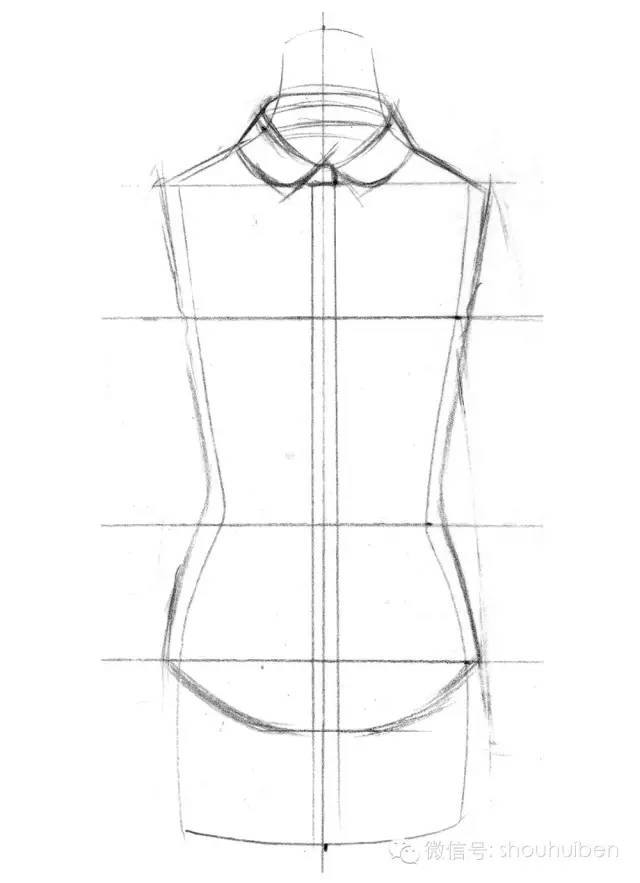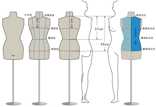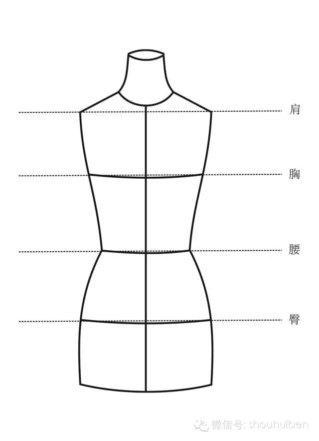 大家可以将人台拷贝在卡纸上,将其剪下来,并在上面标注清楚人台中心线、领围线、肩线、胸围线、腰围线、臀围线。