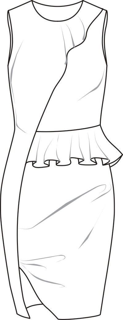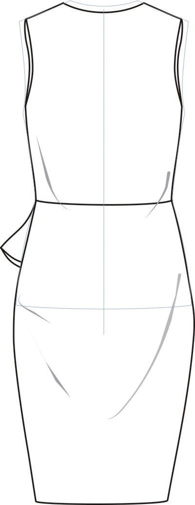 Step 06 用水性笔将连衣裙的铅笔线稿勾勒出来,然后用橡皮将铅笔线稿擦干净,完成连衣裙正面款式图的手稿绘制。