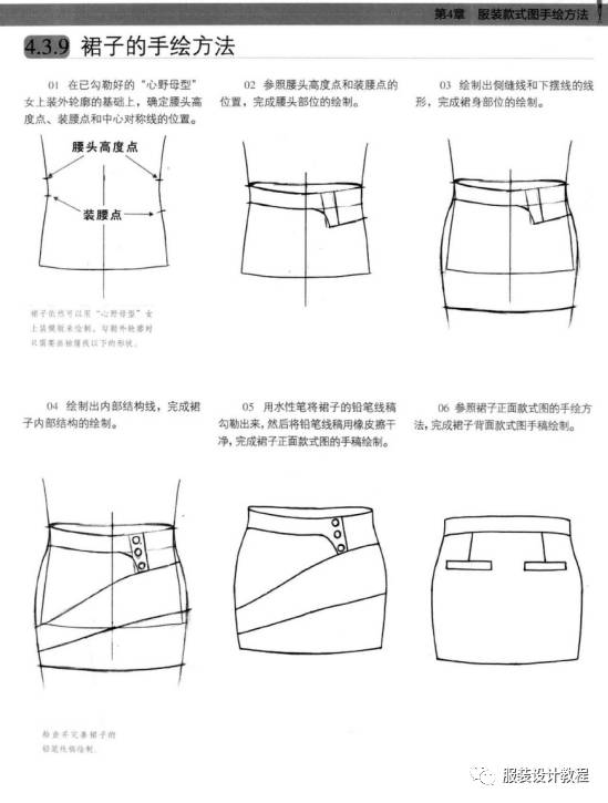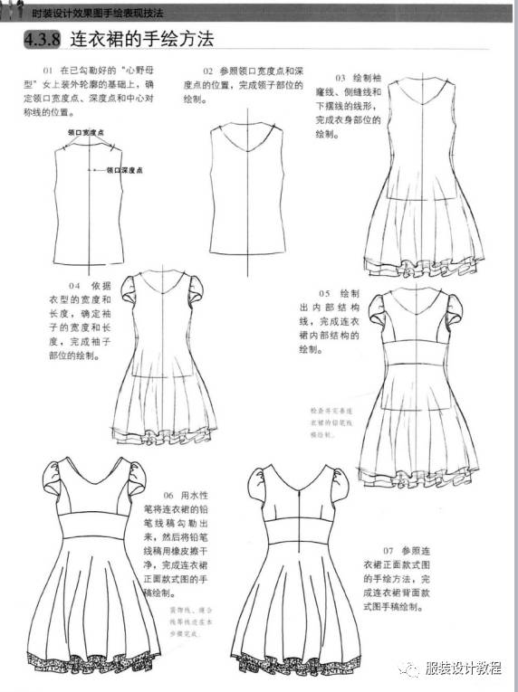 Step 07 参照连衣裙正面款式图的手绘方法,完成连