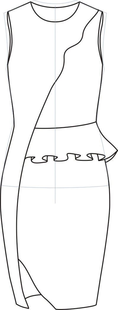 (3)款式图线条表现要清晰、圆滑、流畅,虚实线条要分明,因为款式图中的虚实线条代表不同的工艺要求。例如,款式图中的虚线一般是表示缝迹线,有时也是装饰明线:实线一般表示裁片分割线或外形轮廓线。在制版和缝制时虚线和实线有着完全不同的意义。