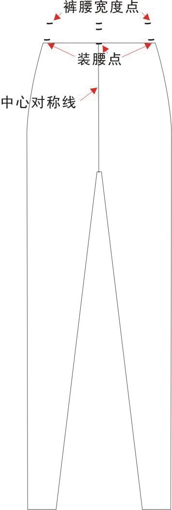 Step 02 参照裤腰宽度点、装腰点和中心对称线的位置,完成腰头的绘制。