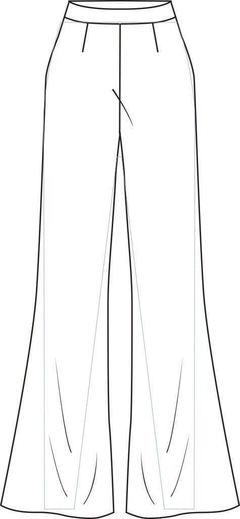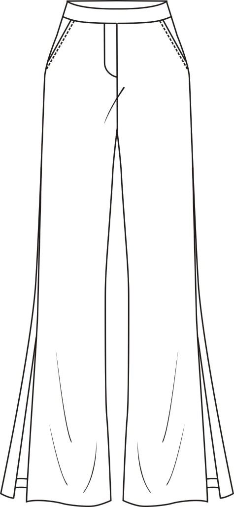 后用橡皮将铅笔线稿擦干净, 完成裤子正面款式图的手稿绘制。