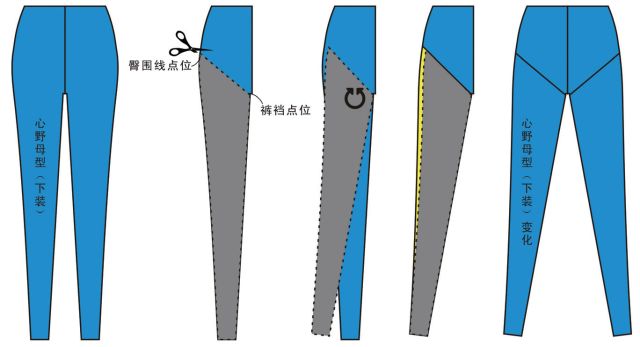本款为高腰裤,所以装腰点位置比“心野母型”女裤的腰位高一些。