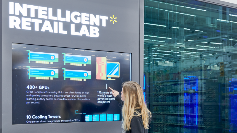 除此之外,沃尔玛还在店内各处设置了互动屏幕,供顾客了解「智能零售实验室」的理念,和背后运作的技术原理。