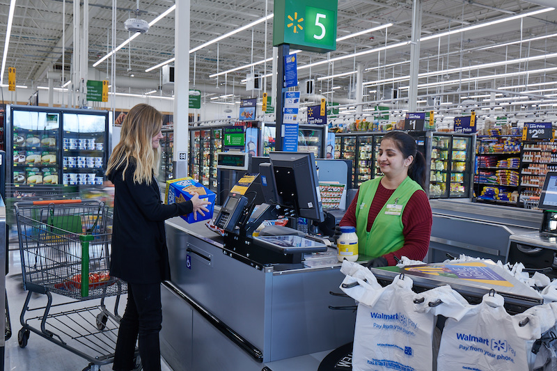 虽然都有技术加成,但跟 Amazon Go「无人超市」的概念不同,沃尔玛这家门店还保留了传统的收银台,也并没有设置自助结账的机器。