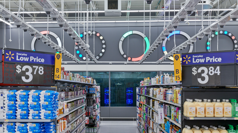这家位于纽约长岛的沃尔玛门店被称为「智能零售实验室」(Intelligent Retail Lab,简称 IRL),占地 50000 平方英尺(约合 4645 平米),拥有超过 30000 件商品和 100 多位员工。原本平平无奇,直至过去几个月,沃尔玛悄悄对它进行了改造。