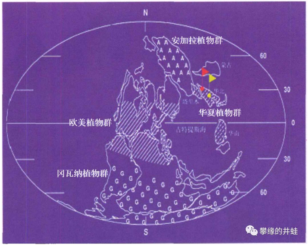 这里稍微介绍一下晚古生代有四大植物地理区系。除了华夏植物区(Cathaysia Floral Province)之外,还有主要覆盖西伯利亚地区的安加拉植物区(Angaran Floral Province);位于泛古陆中部,横跨赤道两侧的欧美植物区(Euramerican Floral Province);以及南半球寒冷地带的冈瓦纳植物区(Gondwanan Floral Province)。位置如上图所示,图片来源自[8]。当然各分区会有过渡和重叠,具体边界还存在争议。植物演化受各分区独特的地理气候条件影响,出现了明显的差异。关于晚古生代的植物区系,推荐阅读豹子的科普文章:《“闲聊”晚古生代的植物区系》[8]。