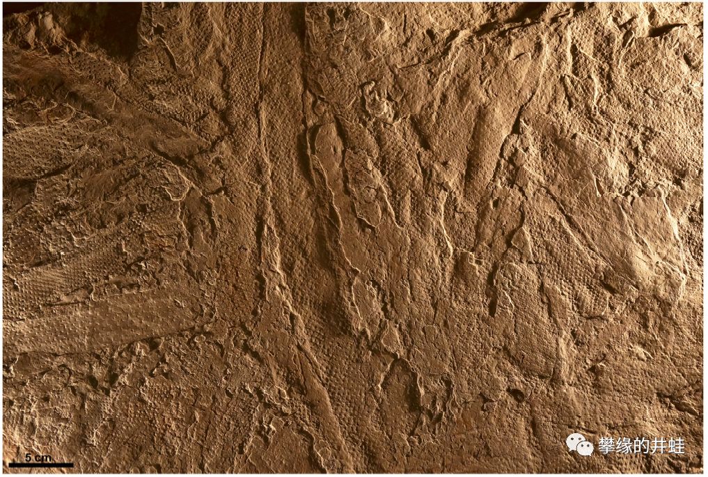 巴西巴拉那盆地发现的另一种早二叠世石松类Brasilodendron pedroanum化石,是一种低矮的灌木。在它的表皮上可以看到石松类标志性的鳞片状叶座(leafcushion)。图片来源自[5]。