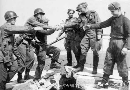 1945年4月25日,一组照片从易北河畔托尔高火速传向全世界。在那组照片中来自东方的苏联红军和来自西方的英美盟军在易北河胜利会师了。