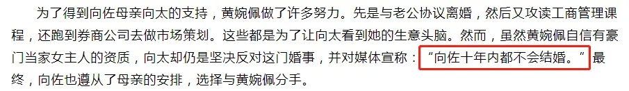 看看向佐这些年谈过的女朋友,从黄婉佩到王秋紫再到袁圣殷,向太对哪个都不满意,棒打鸳鸯三连不说,还对媒体放过话,称向佐十年内都不会结婚。