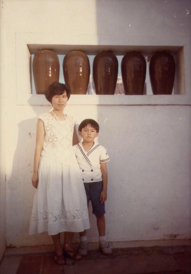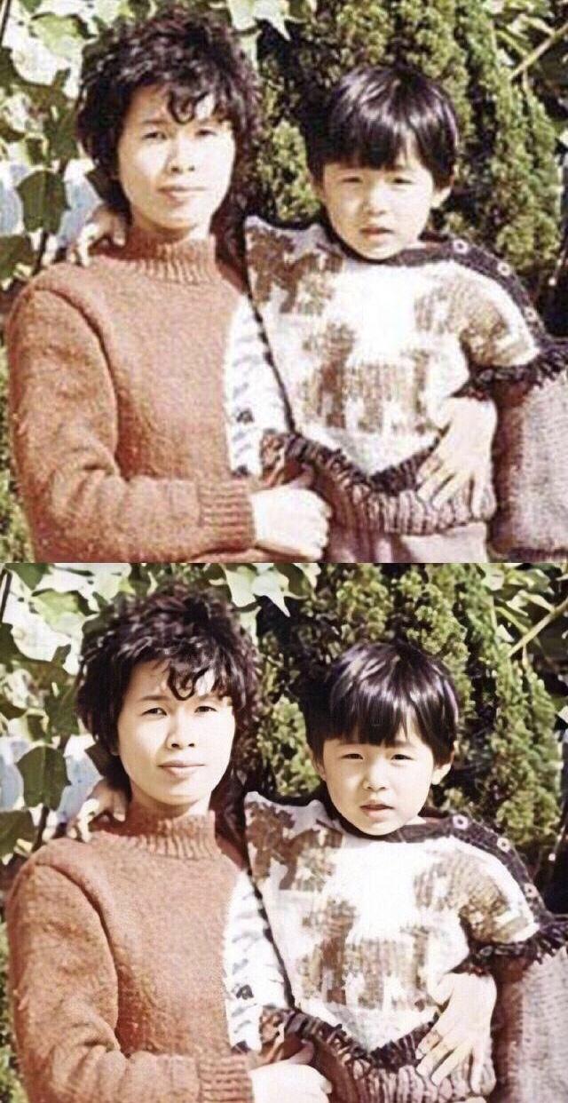 梳着当年最流行的中分头,突然觉得杰伦有一种书生的气息,就是也有点子沧桑,妈妈手搭在杰伦的肩膀上,有点慈母的感觉。