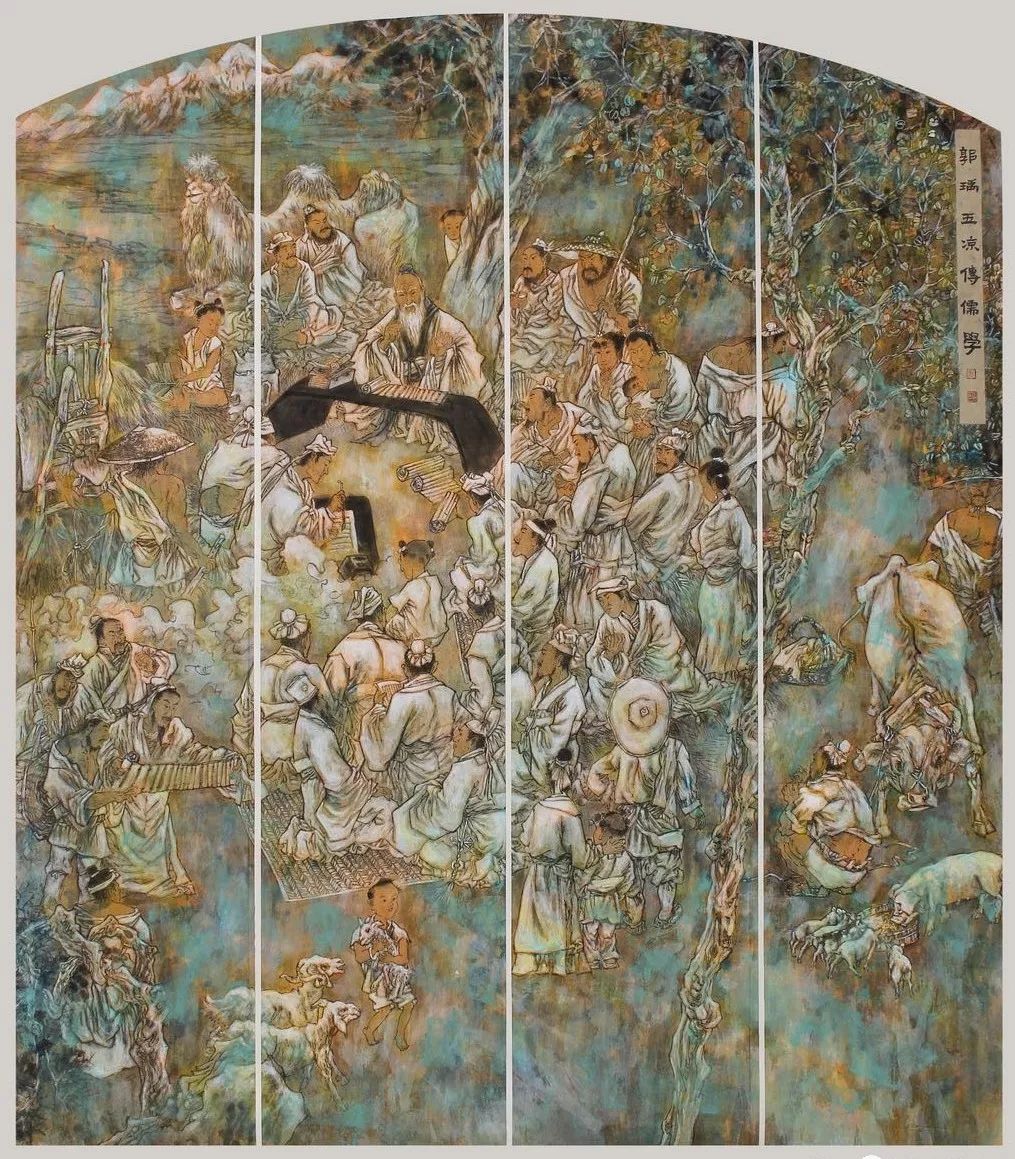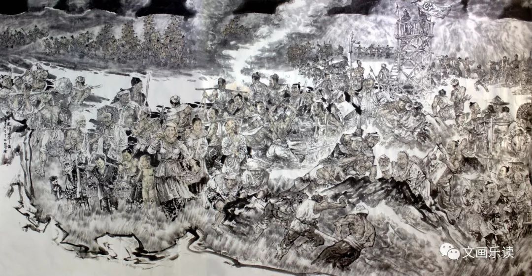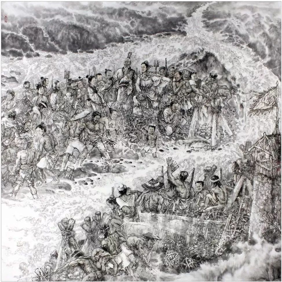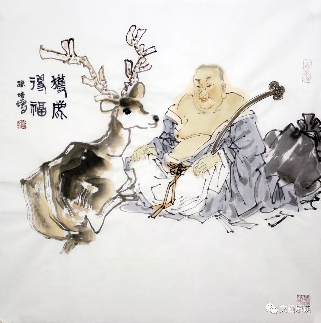 孙培增努力于水墨写意人物画,不畏艰难不断探索前进,这是我看重他的另一方面。水墨写意人物艺术是中国画传统中最为重要的种项,古代人物画积累了非常丰富的宝贵经验和珍贵的遗产,20世纪以来,中西文化交流,建立了新式的美术教育,吸收了西方写实人物技法,包括徐(悲鸿)蒋(兆和)体系在内,中国人物画艺术有了很大的发展,出现了许多优秀的人物画家和成功的里程碑式的作品。应该说,水墨写意人物画是一种具有相当难度的画法,要求画家经过严格的训练,不仅要谙熟人的自然生理形态,骨骼肌肉解剖结构,更要能够表现人在各种状态下的心理情感喜怒哀乐,除此之外,写意人物画还有更高的技艺的要求,即笔墨表现方面的提炼取舍,以书写的线条简练而具有表现力的描写对象,此外,在生宣纸上运用毛笔水墨的掌控能力难度也很大,并非一蹴而就的事情。近些年来,在中青年画家中,水墨写意人物画比起工笔画要有此消彼长之势,总起来看,原因不外乎工笔重彩画虽然制作费时但成功率相对于生宣水墨却比较高,逼真工细的制作总会让一些展会的评委们网开一面,这对迫于生活压力而急于出头的青年画家们来讲,也是无可奈何的。另一方面,毕竟会有不畏困难不计得失勇于攀登的人,在水墨写意人物画上大力投入。孙培增就是其中一位。