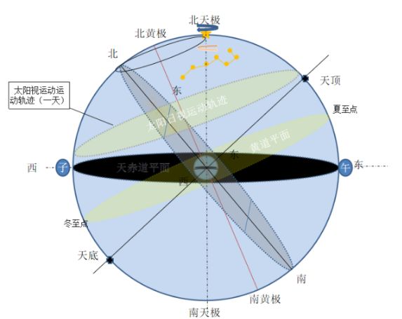 为时约3000年以前,由于以地球为参照物,把地球看作是居于天球的中心,这样整个天球,即比之地球的扩大,其南北极相连的中心轴、赤道和黄道,无不一一与地球相对应。这就是中国古天文学的核心。以天极为中心的赤道坐标系的建立,是中国古天文学有别于西方古天文学的主要标志之一。它至今仍为现代天文学所充分利用,并成为其不可缺少的极其重要的内容。