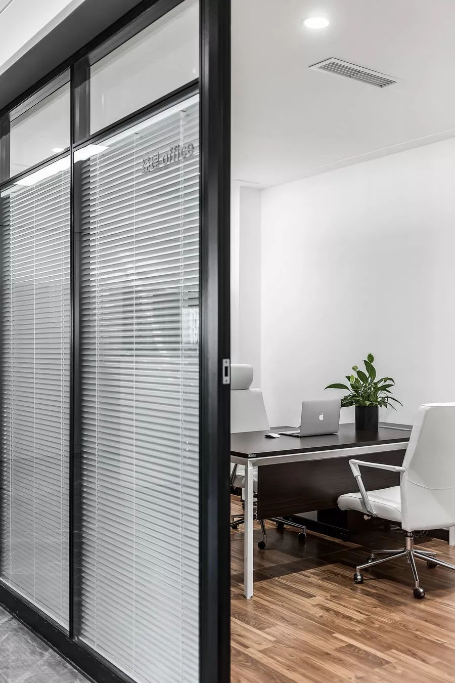 前台后面是智能化的玻璃幕墙,通过控制,可以显现亦可隐藏。开会时,显现,保证了会议的私密性,平时隐藏,可以做背景墙使用。