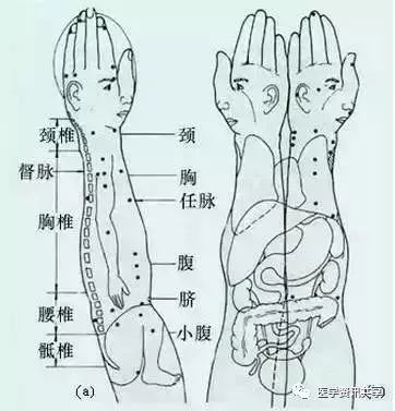 (a)上肢阴面合拢,阳面向外的体表投影图