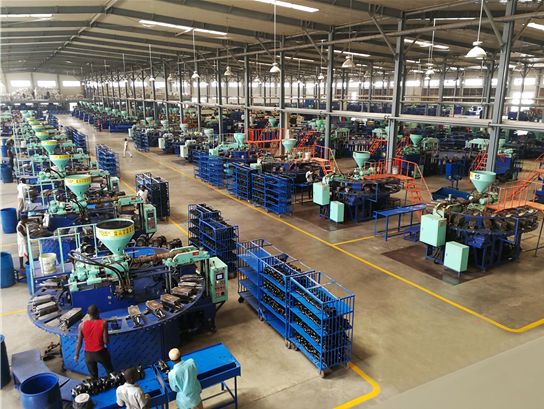 在尼日利亚北部靠近全国第二大城市卡诺的吉加瓦州境内一条公路旁,有一片与周边零星散乱建筑有着明显区别的整洁厂区,这里是李氏集团今年2月投入使用的维尼纶制鞋厂新厂址和公司驻地。在单座面积达1万5600平米的大型现代化厂房内,当地工人在轰鸣的百余台机器旁有序地忙碌。在生产高峰时,这里能日产合成纤维拖鞋、凉鞋、雨鞋等达十万双。