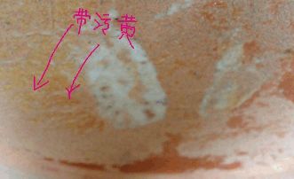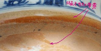另 一只仿品大罐底足的假火石红现象(褐中带黄比较污浊发 暗)