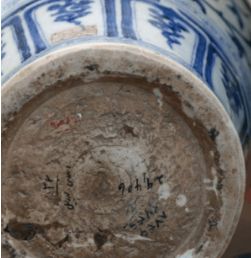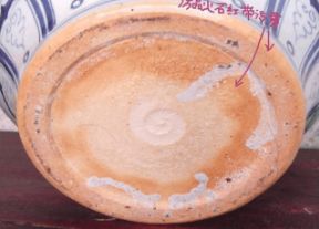 元 青花瓷大罐口沿内釉滴边缘一线火石红现象