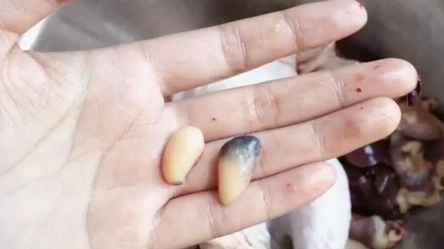 鸡腰子找到了,那为什么会变黑呢?专家解释:一种情况是可能这个鸡还是活着的时候,他的“鸡腰子”就由于某种原因局部淤血坏死了。还有一种情况,就是鸡在屠宰后没有及时开膛,内脏器官长时间卧在腹腔里,长时间温度比较高,出现了腐烂变黑。