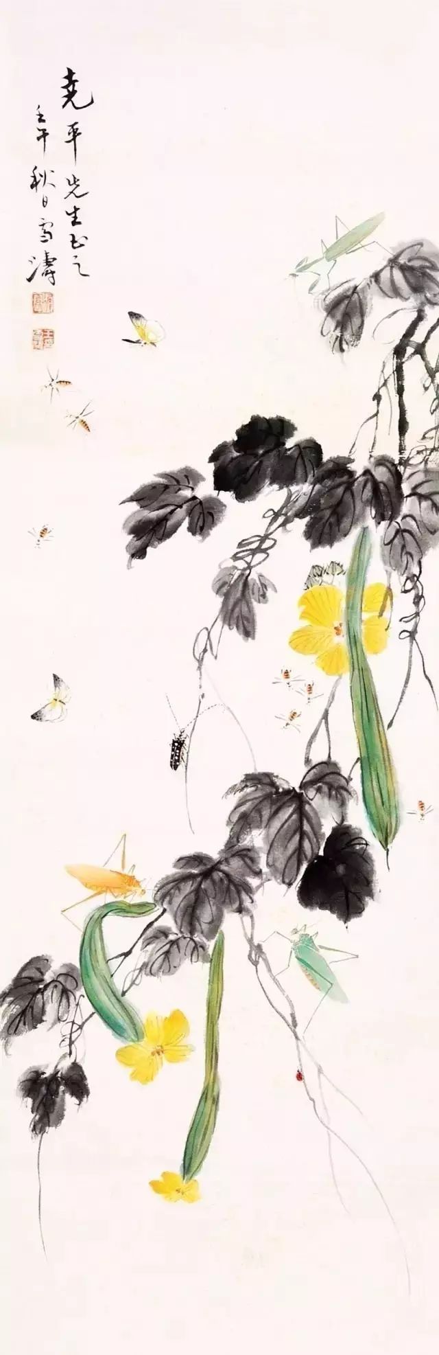 王雪涛(1903--1982)是现代中国卓有成就的花鸟画大师,以小写意花卉草虫著称画坛。其笔下的作品,笔墨洒逸、鲜活多姿、生动可爱,极富笔墨情趣。