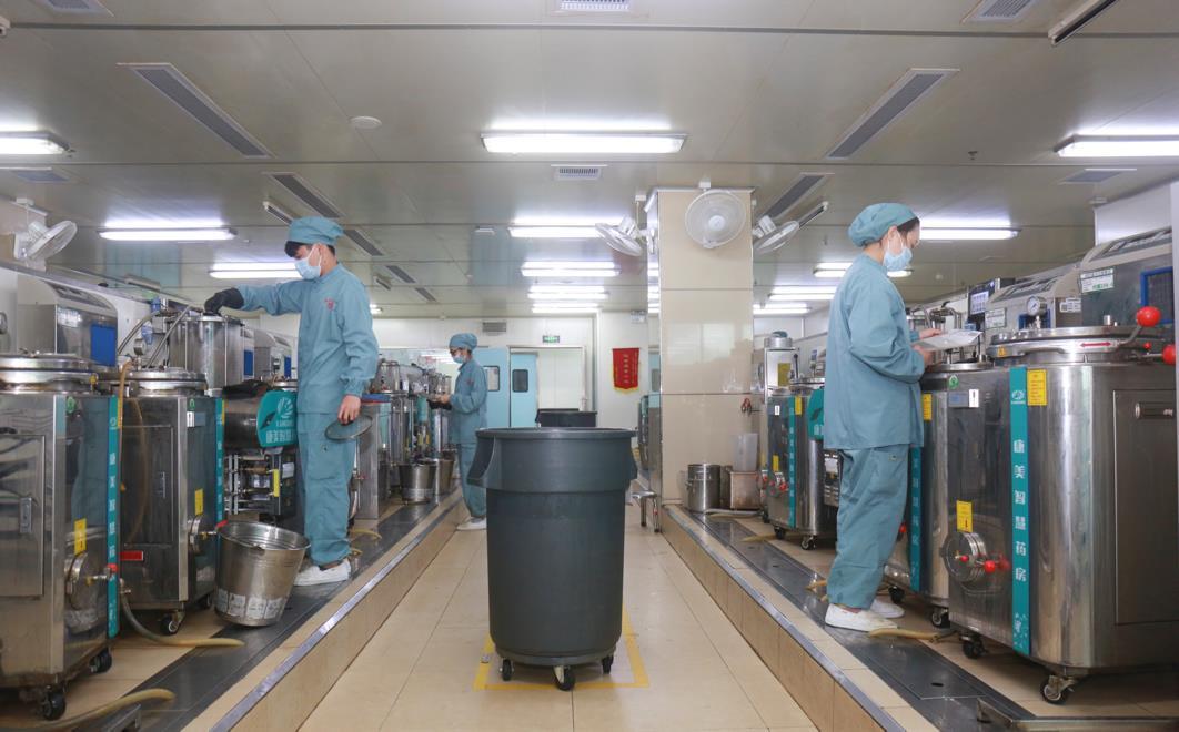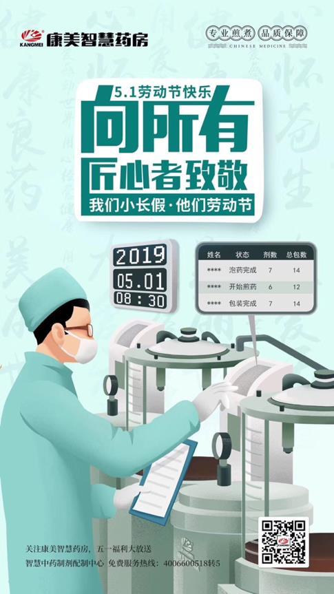 为了保障五一期间,患者依然能像收快递一样,在家坐等药物配送上门。康美智慧药房工作人员不仅有条不紊地完成病患药品的审方、调剂、煎煮与配送,同时也做好设备维护、药材储备,让患者在节假日期间也能体验便捷、贴心的智慧医疗服务。