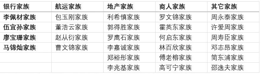 还有人把香港近代以来以家族为单位的财团做了个分类: