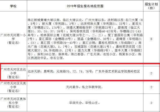 按照目前天河区公布的招生细则。远洋天骄的配套小学暂定名为“志远小学”,今年计划开设两个班级。