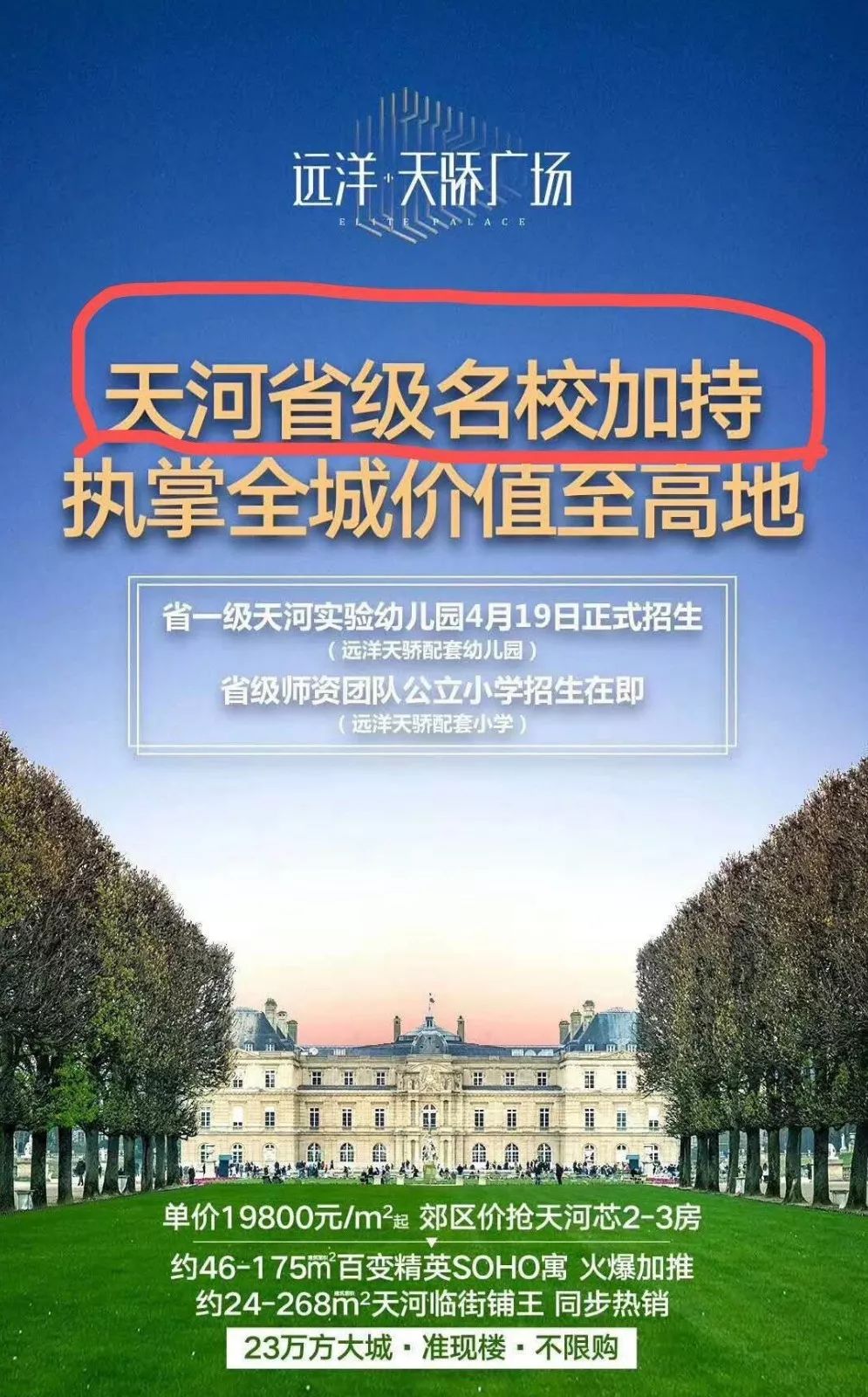 4月28日,广州地产派报道了天河楼盘华润天合卖楼时大肆宣传双名校,最后几千名业主的置业初衷有可能会落空一事,详见《天河名盘大卖“双名校”,快开学就变了……》。