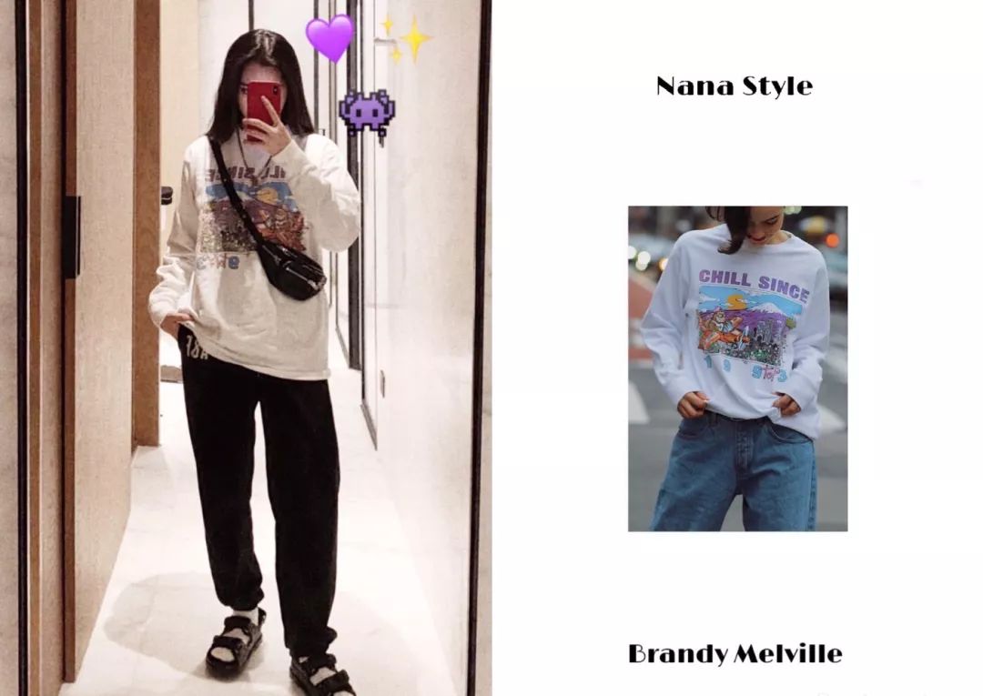 至于如何让国内的女孩都变成了 BM 粉丝,最大的功劳还得归我们娜比。在欧阳娜娜的每日穿搭中,Brandy Melville 几乎成了她最常上身的定番品牌。
