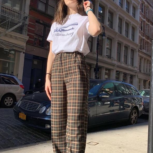 还有格纹长裤,也都是高腰、直筒,修饰腿型的版型,不会显得腿粗,搭配 Brandy 自家的基础款top,就是一个随时可以出门的复古look~