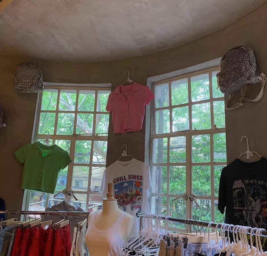 在上海的 Brandy Melville showroom 总共两层。为什么说是 showroom 呢,因为他们目前只在周末开放(偶尔还会扑个空),而且试了衣服后不能当场买单,必须要到官网上去下单,然后邮寄到家。