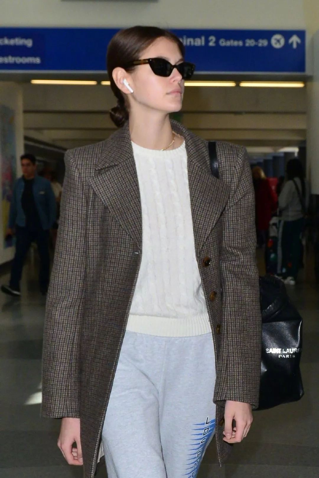 但是哦,她所穿的单品,劝大家都谨慎种草。因为在 Kaia 无敌的身材之上,没有哪件 Brandy Melville 会是不好看的。