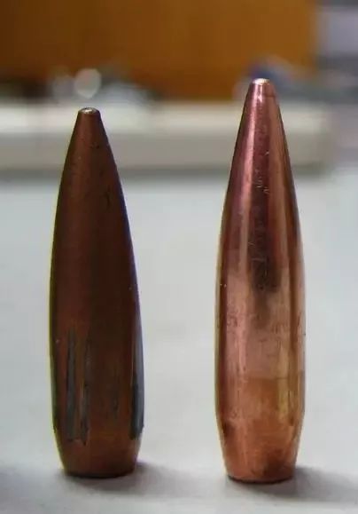 △ 轻弹(左)和重弹,弹头不一样长,但重弹装入弹壳比较深
