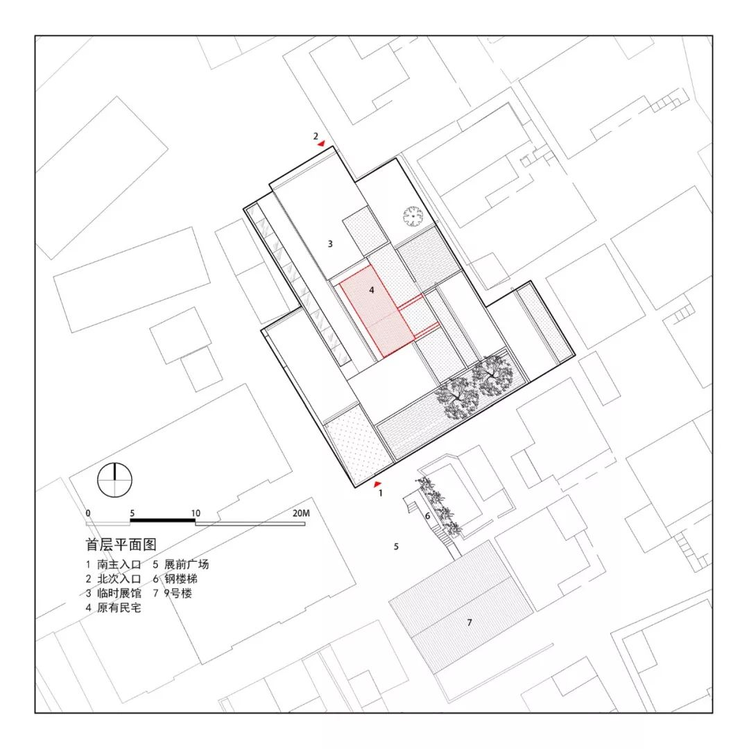 盐田展区菜田地展览馆的总平面图、立面图与剖面图