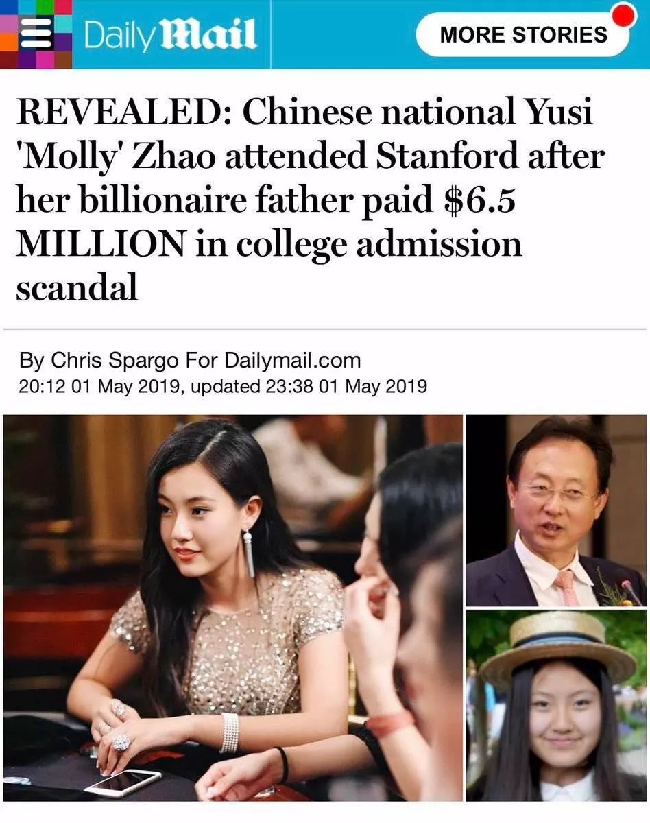 洛杉矶时报、每日邮报等外媒报道,有中国亿万富翁家庭花650万美元(约合人民币4376万元)让孩子入学斯坦福大学,外媒指出该高价入学事件当事人为该校学生赵雨思(Yusi'Molly'Zhao)其父亲为步长制药公司董事长赵涛(Tao Zhao),目前该学生已被斯坦福大学开除。