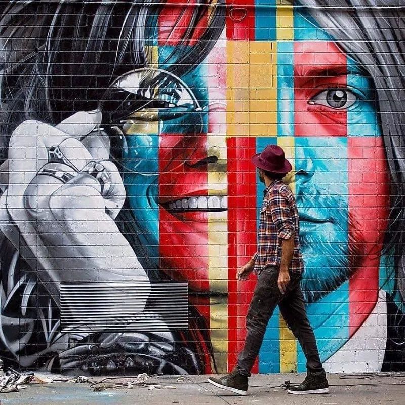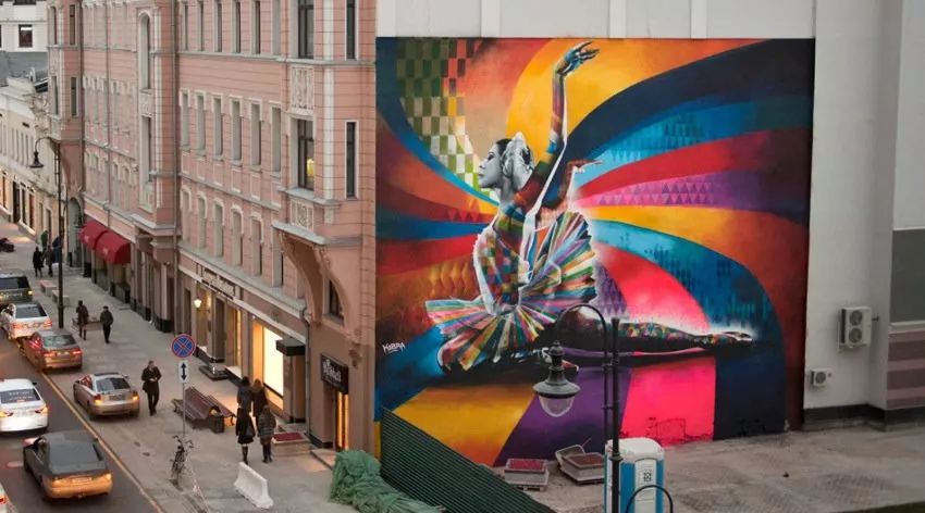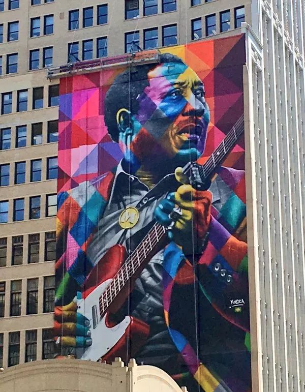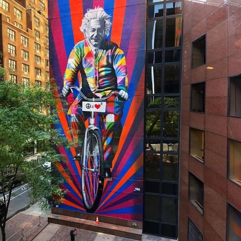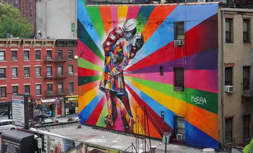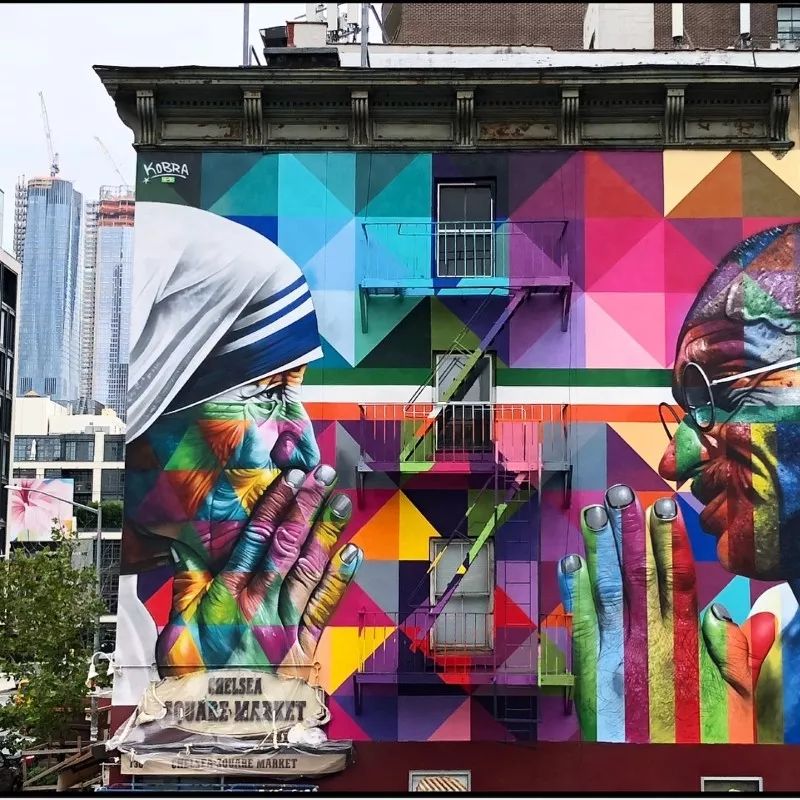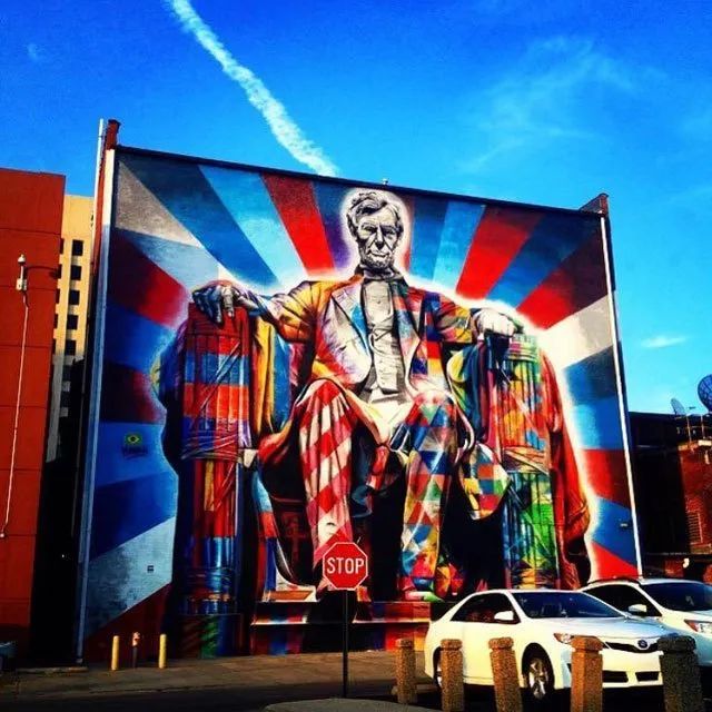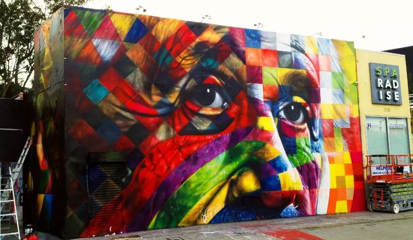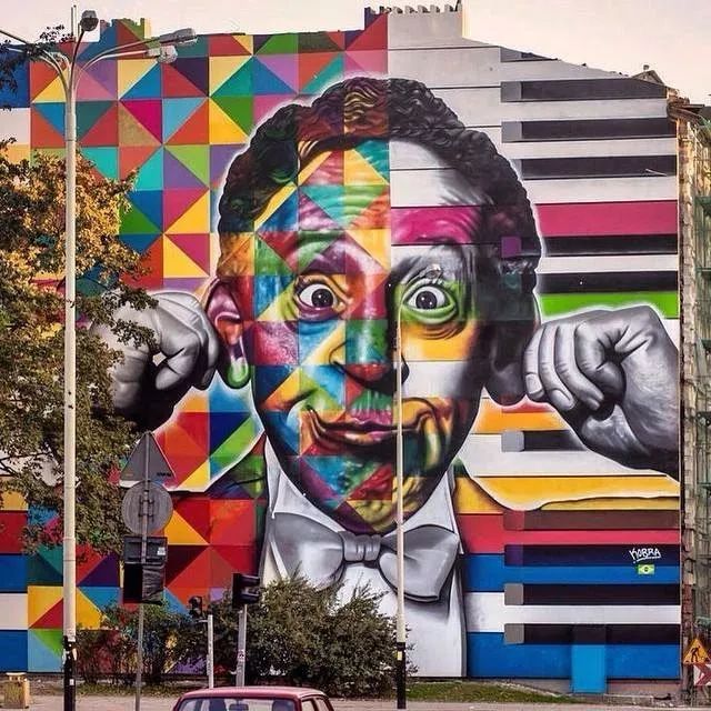 Eduardo Kobra,巴西街头涂鸦艺术家,他的作品有独特的涂鸦风格,有着巴西特有的奔放热情,鲜明的色彩和绗缝般的几何形状,万花筒般缤纷的用色几乎是他的创作招牌。