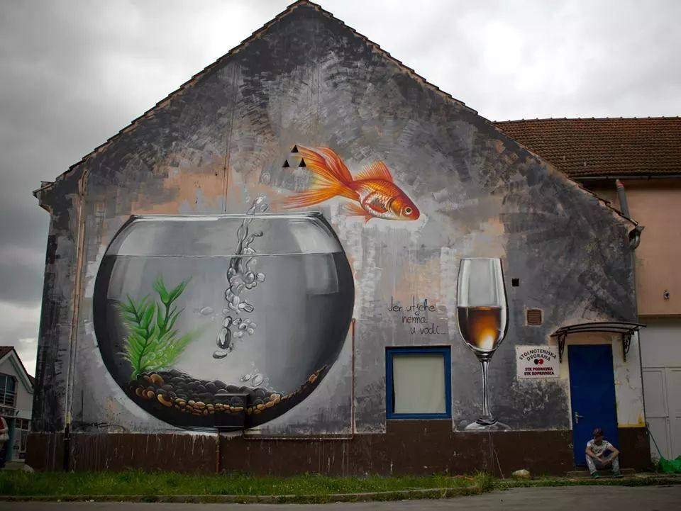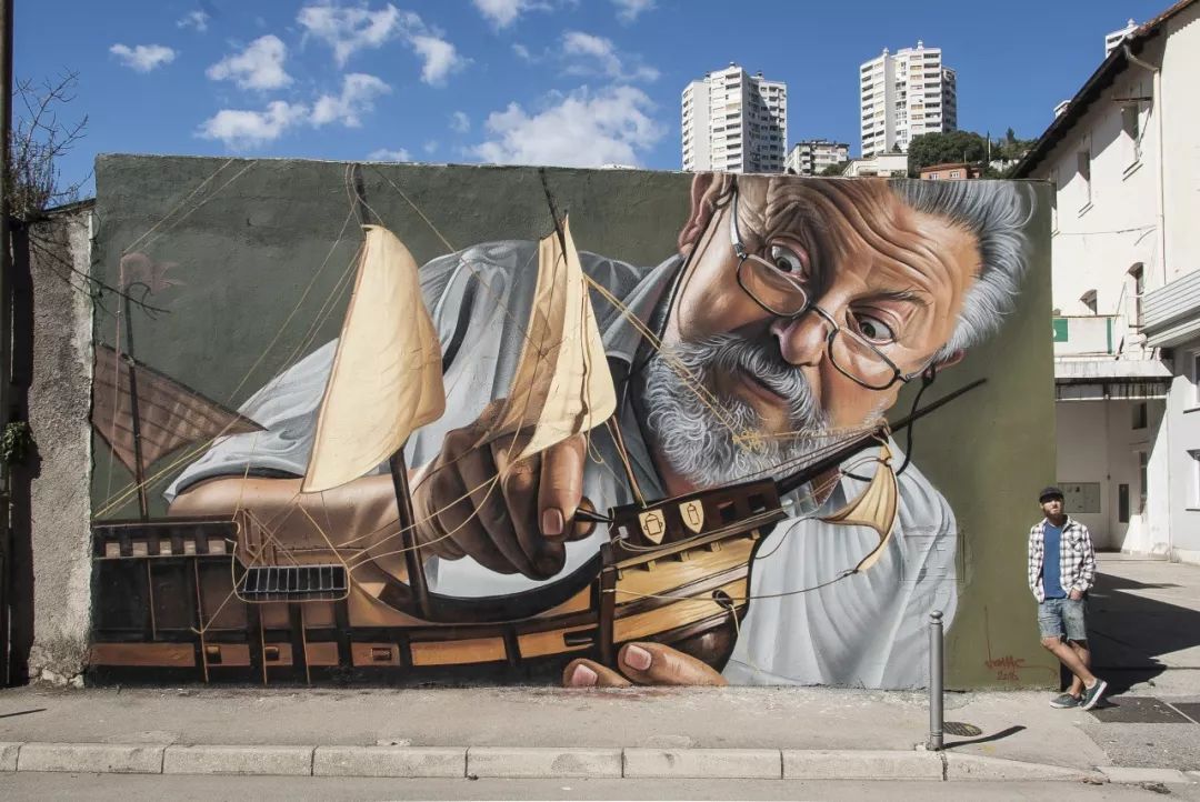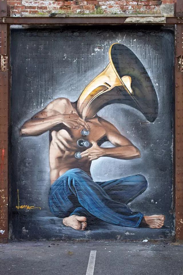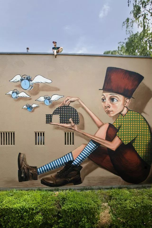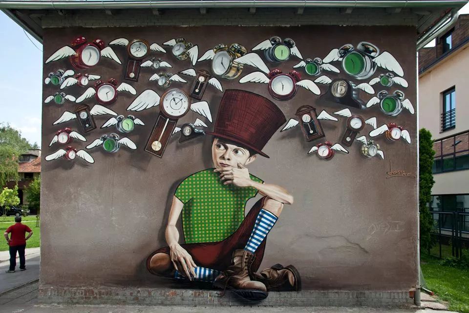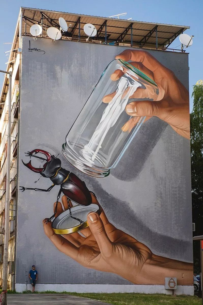 Lonac,克罗地亚涂鸦艺术家。他以大型超现实壁画涂鸦闻名,他的涂鸦受到滑板文化、漫画、涂鸦、电影、音乐等的影响。Lonac喜欢以一些草图和照片作超现实涂鸦的参考,偶尔也会将照片和抽象背景或者二维风格结合起来。