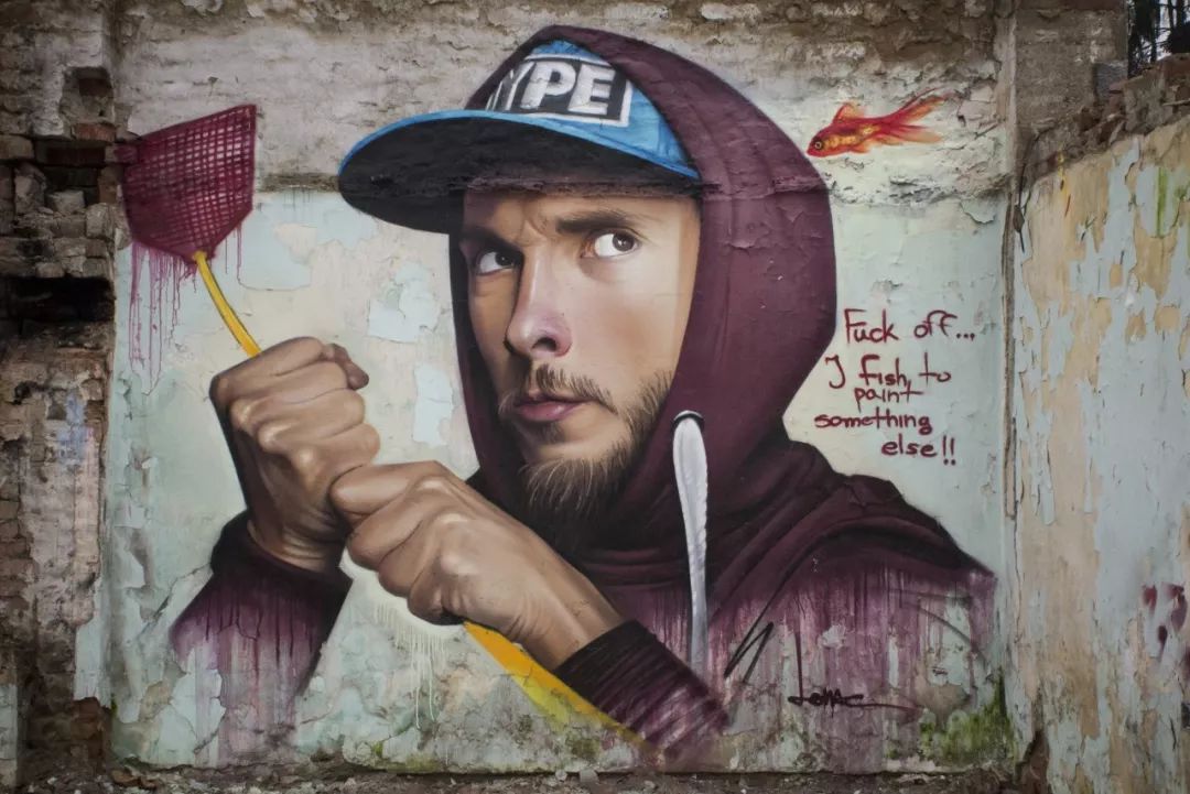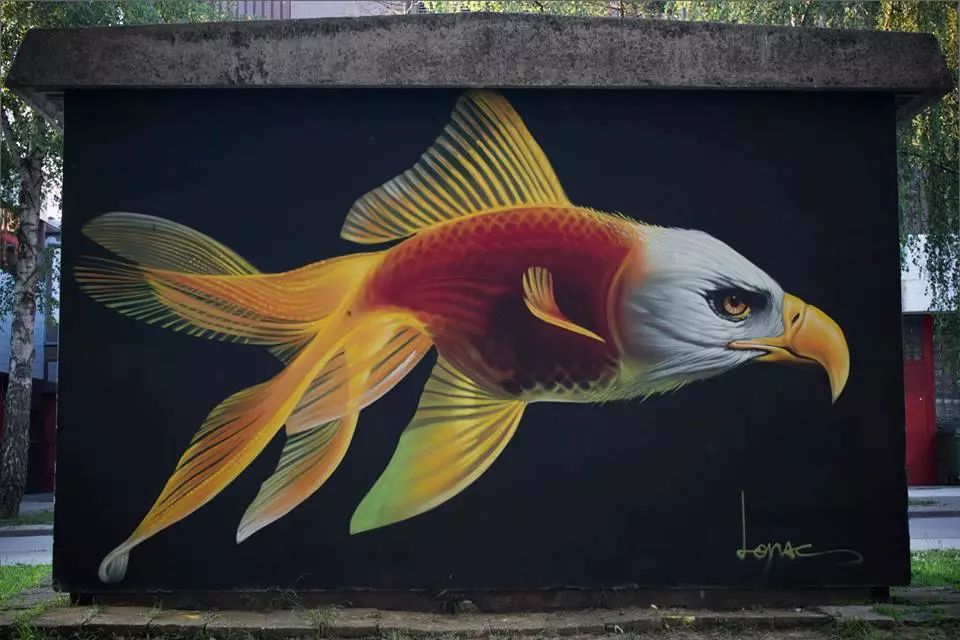 Lonac的涂鸦风格多变,在探索中不断发展。他的涂鸦作品既有色彩丰富、写实的大型壁画也有小型幽默稳重的作品,令人印象深刻。