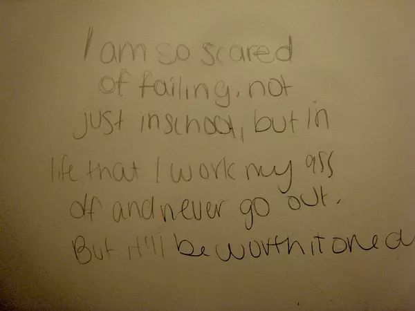 “我很害怕失败,不仅在学校里还是生活中。我的论文总是写不出来,但是经历的过程还是值得的”