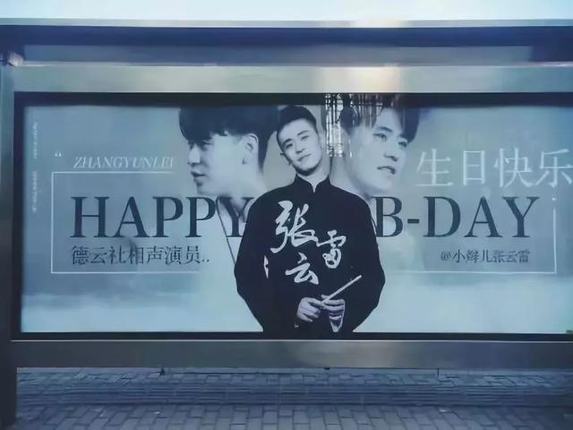 上一篇说过,张云雷上过美国时代广场纳斯达克屏幕,同样,在他生日时,公交站牌也会被换上他的照片。
