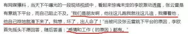 在当时媒体视频中张云雷的朋友李欧透露,张云雷是自己跳下去的,问及原因,说“感情问题和工作原因都有”!当时的张云雷多大?24岁,回德云社四年多,事业正值上升期,感情问题?无所查询。