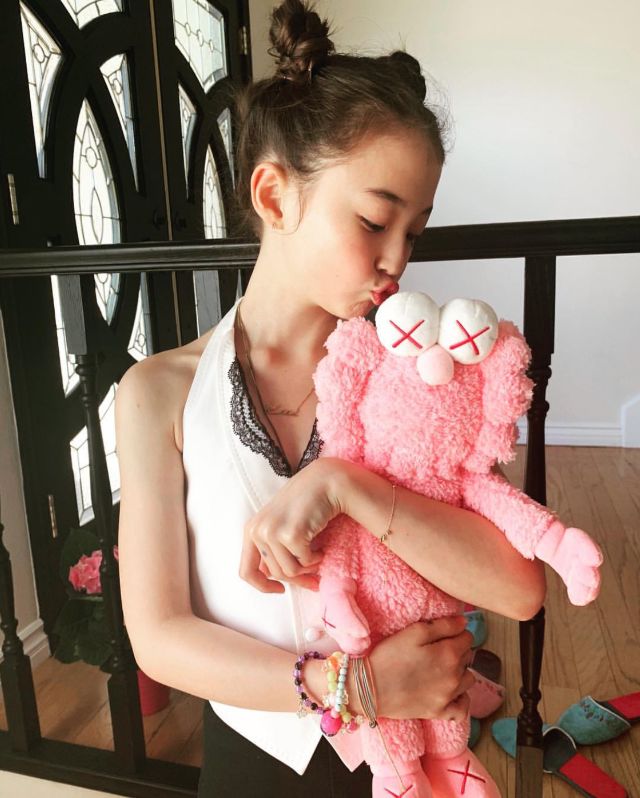 名人、艺术家们也开始关注到Ella,就连KAWS也不忘送一只最新的Kaws BFF Plush Pink给她,可见这个新生代小模特的影响力。