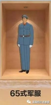 人民解放军海军65式军服较55式军服的变化最大,可谓面目全新。干部、战土服都改成了传统的中山装、干部服是四个口袋,战士服是两个口袋,解放帽样式(女军人的军服采用西装领口上衣,无檐圆形软军帽)。制服整体颜色为灰色。帽徽是三军统一的红五星徽,材料为铝制烤漆。