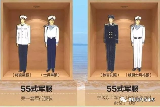 1955年10月1日,是新生的人民共和国建国庆典的日子,也是人民共和国海军军服史上具有重要意义的一天。经国务院第18次会议批准,人民解放军继50式以后的一套全新的军服在这一年的国庆日正式推行。根据颁行的时间,这套军服被简称为55式军服。