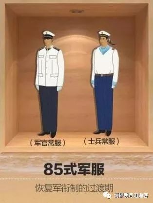从1981年开始,由总后勤部根据恢复军衔制的要求具体开始了新一代军服的设计工作。1984年1月,新军服方案得到中央军委批准,于1985年正式下发部队,按照人民解放军军服的命名惯例,称为85式军服。85式军服样式实际并未有太大创新,主要参考了55式军服的设计方案,由于当时人民解放军的军衔制度尚未制定完善,此套军服上只是预留了一些用以安装军衔配饰的位置,而并未实际采用军衔徽记。同时,由于经济条件所限,85式军服在种类上和65、74式相近,较为单—。
