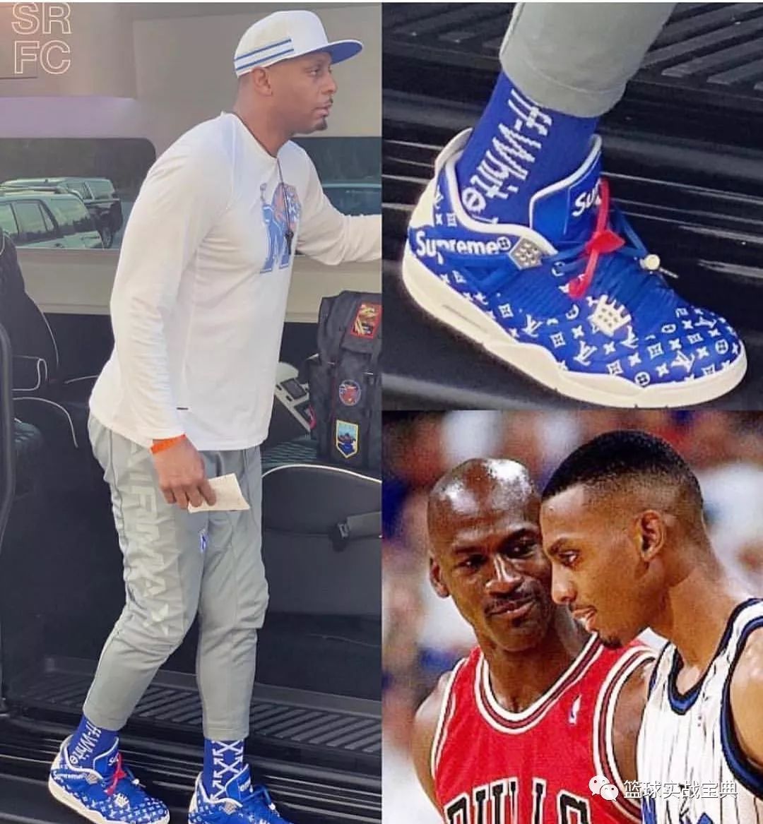 没想到典哥今天刷图却看到了NBA名宿便士哈达威穿上了一双Air Jordan 4 Louis Vuitton x Supreme。
