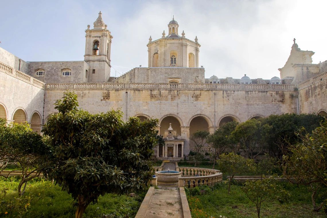 圣多米尼克修道院(St Dominic Convent)马耳他拉巴特市内,地中海建筑风格,四面封闭的建筑结构,中间是方形的绿地庭院。