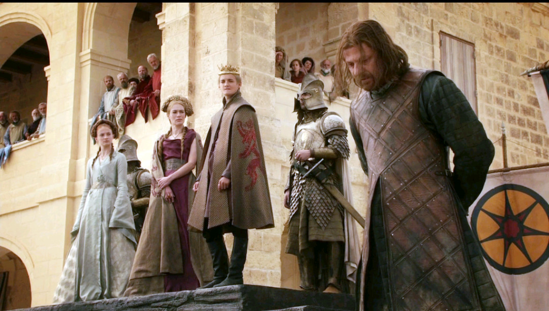 奈德在贝勒大圣堂前被处决,具体位置就在堡垒内部的大广场,剧组后期应该略有处理,但是看到建筑相同的色调,也不难猜出正是取景于此。