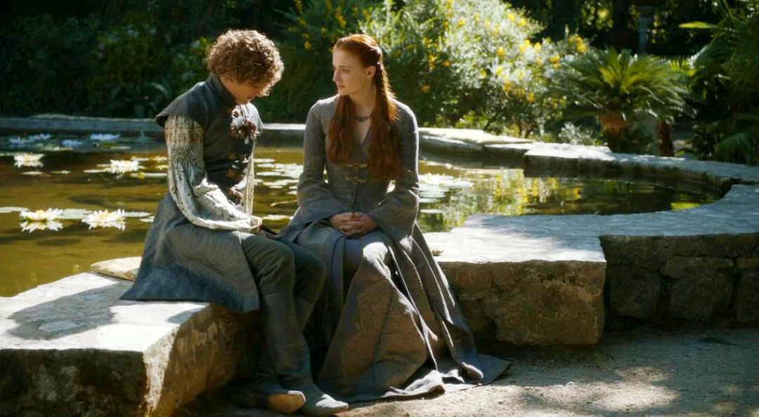 小指头离开君临前,在红堡花园与珊莎再次谈话。
