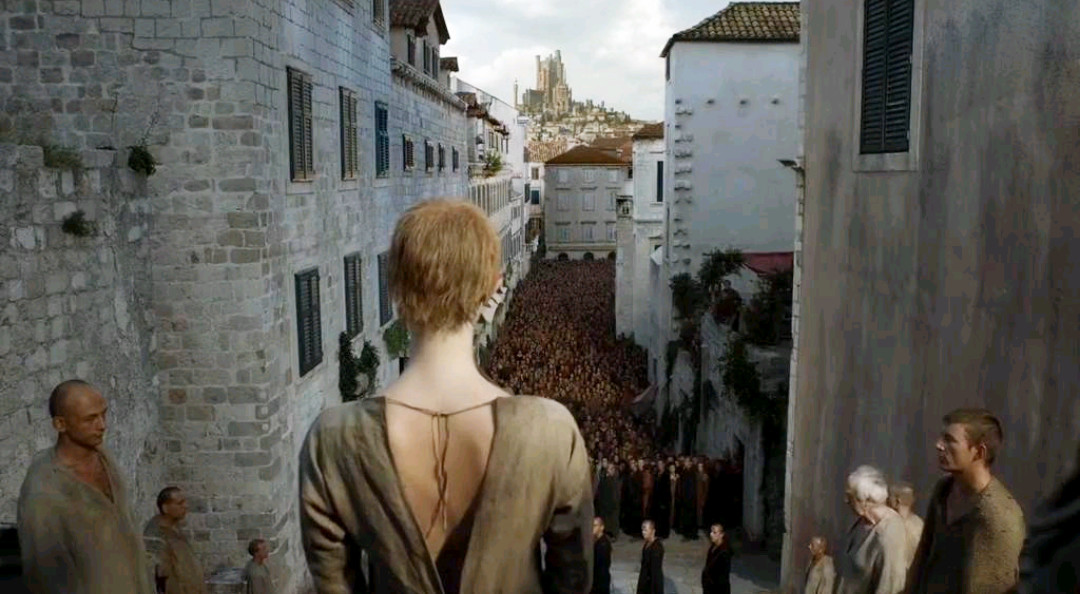 瑟曦的赎罪之路从贝勒大圣堂前的台阶开始。